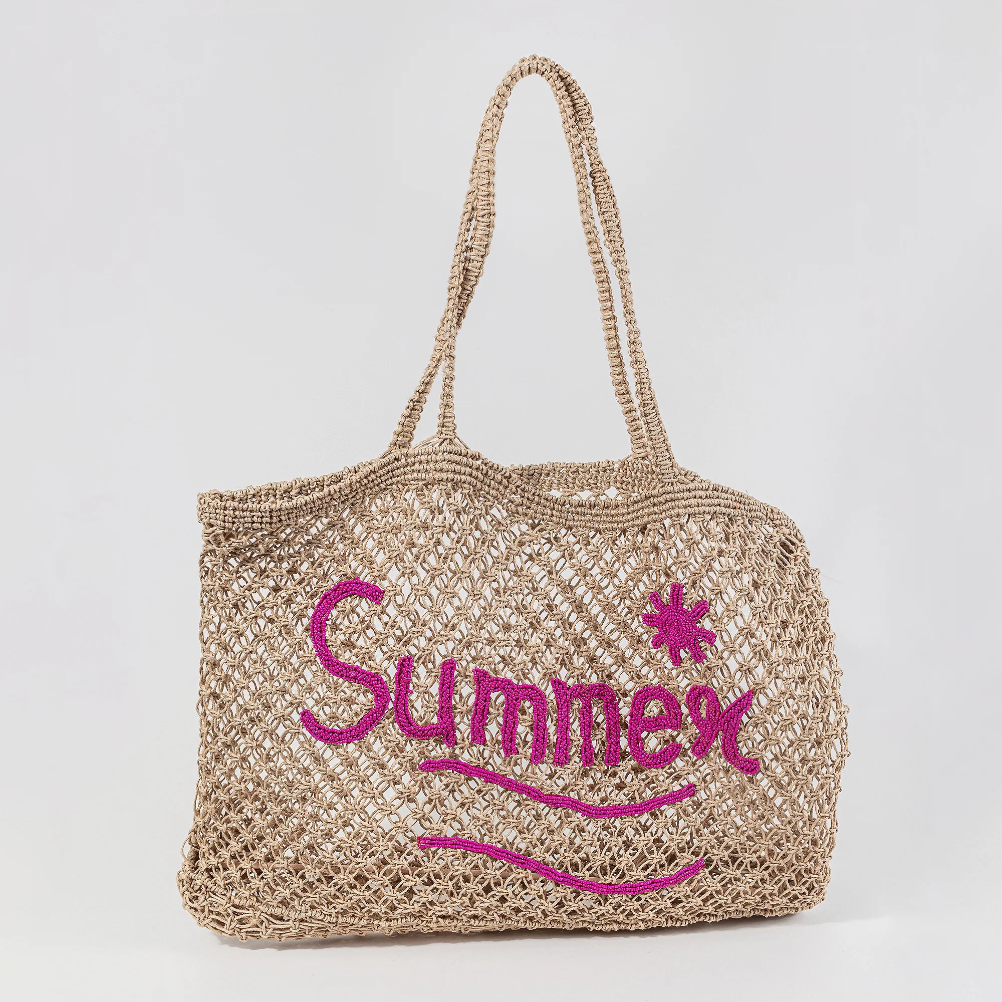 “Summer” seed beaded hand loomed beach tote bag made with Jute